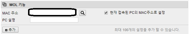 - 현재 접속된 pc의 mac주소로 설정 눌러주시고 PC설명 간단히 적고 추가해주세요.