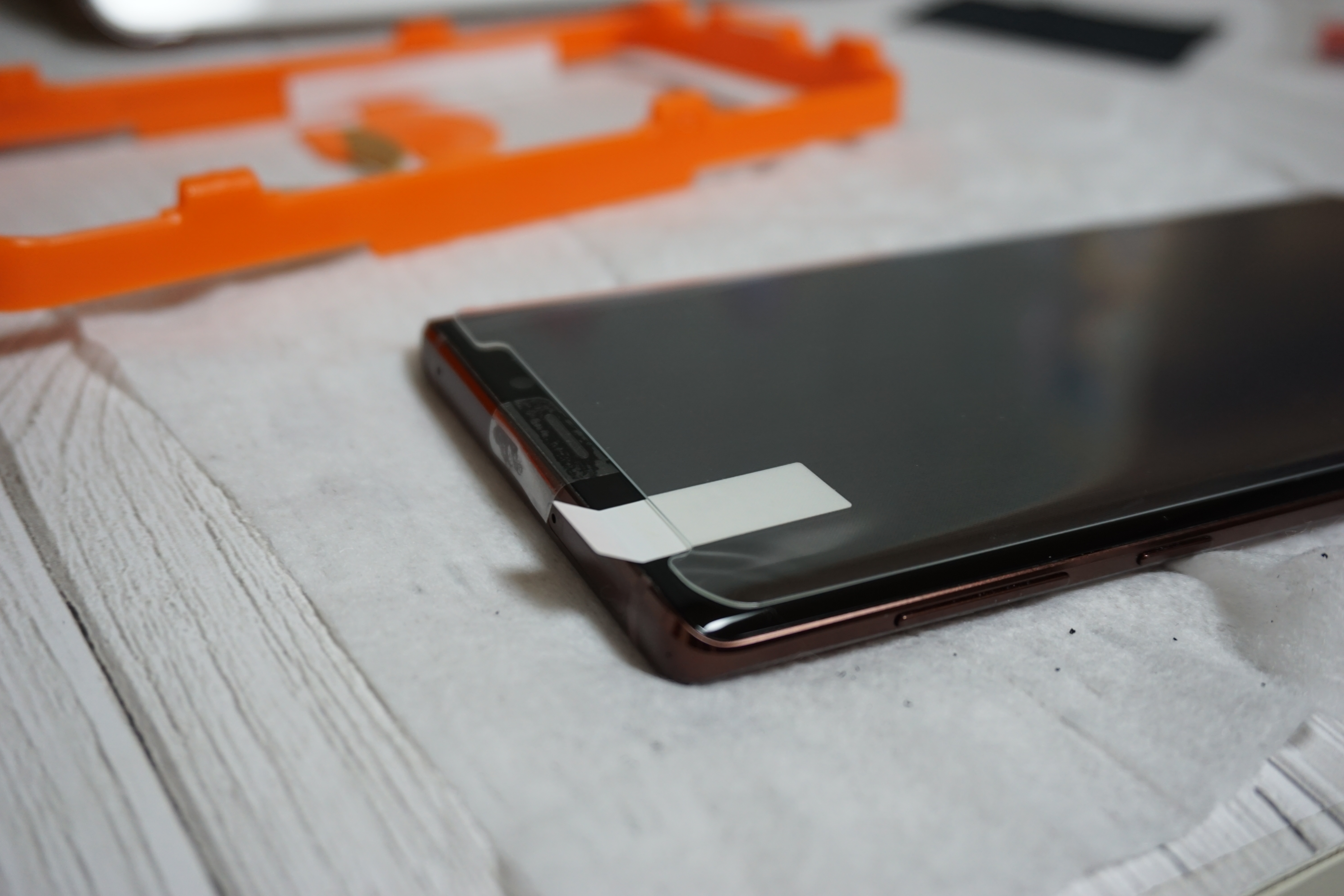 그리고 액상을 화면에 풀어서 가이드툴대로 부착을 진행했습니다.